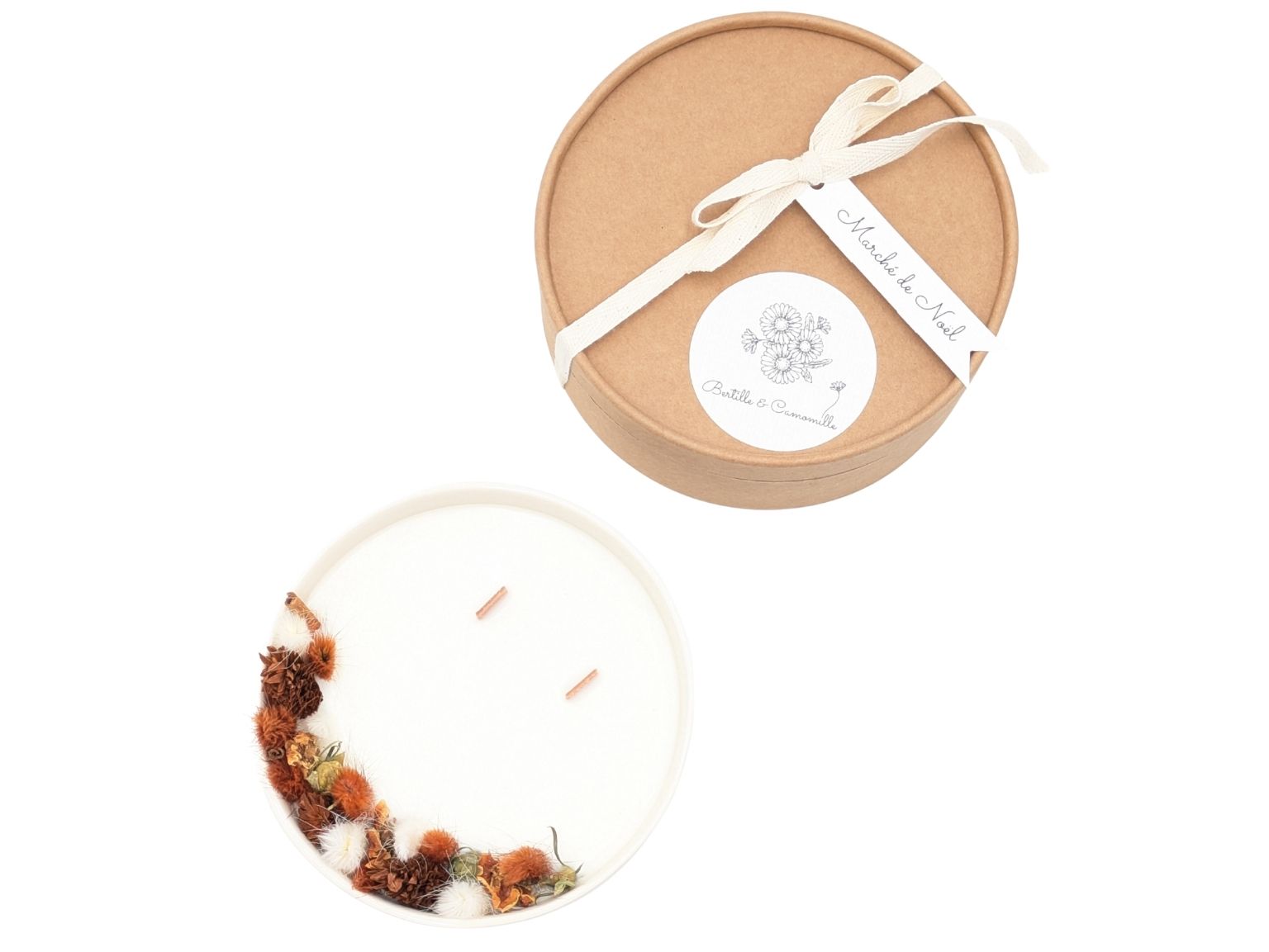 Bougie Fleurs Séchées Parfumée Marché de Noël – Un parfum subtil et envoûtant
