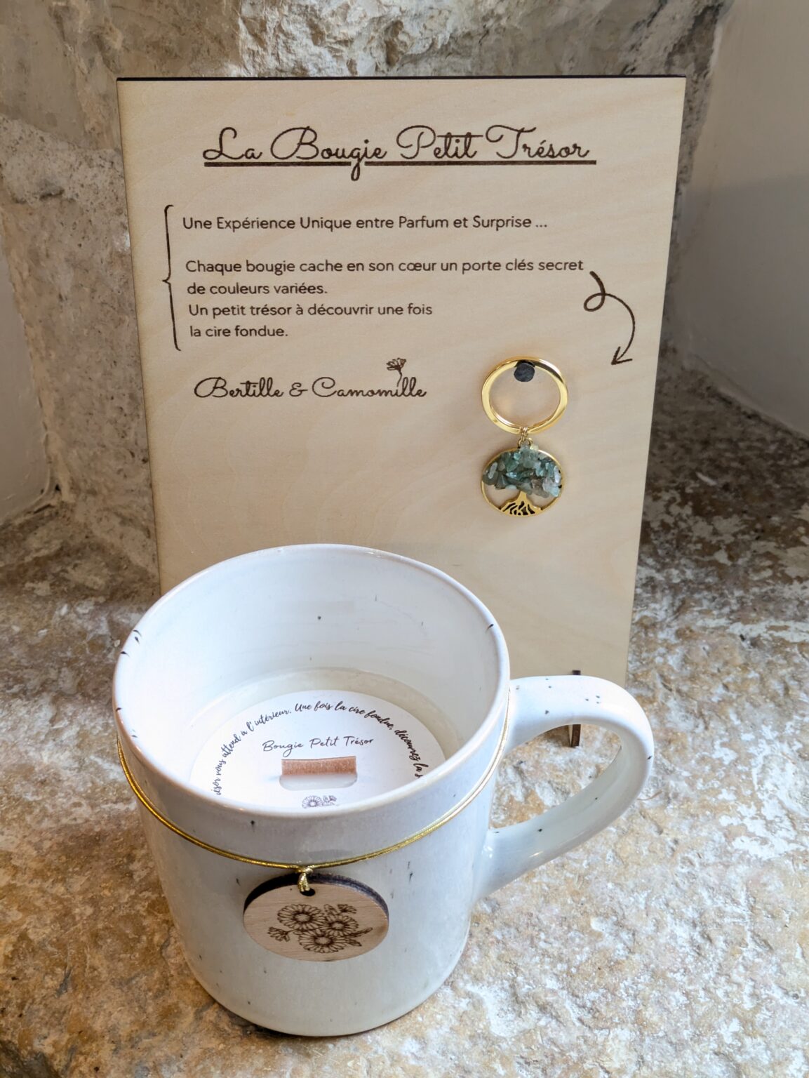 Chaque Bougie Petit Trésor cache en son cœur un secret : un joli porte-clés surprise.